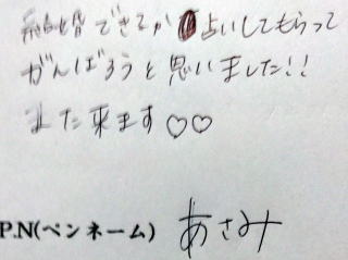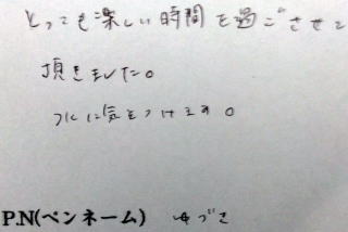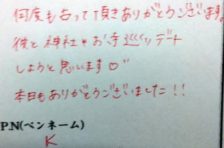 ☆占いの紙がもらえるのはとてもいいと思いました。(匿名G様)