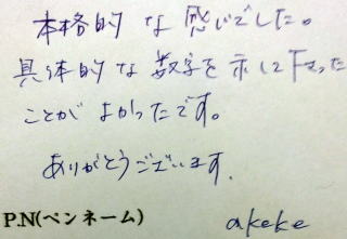 ※ご感想を頂戴した皆様より、掲載OKのご了承を得ております。